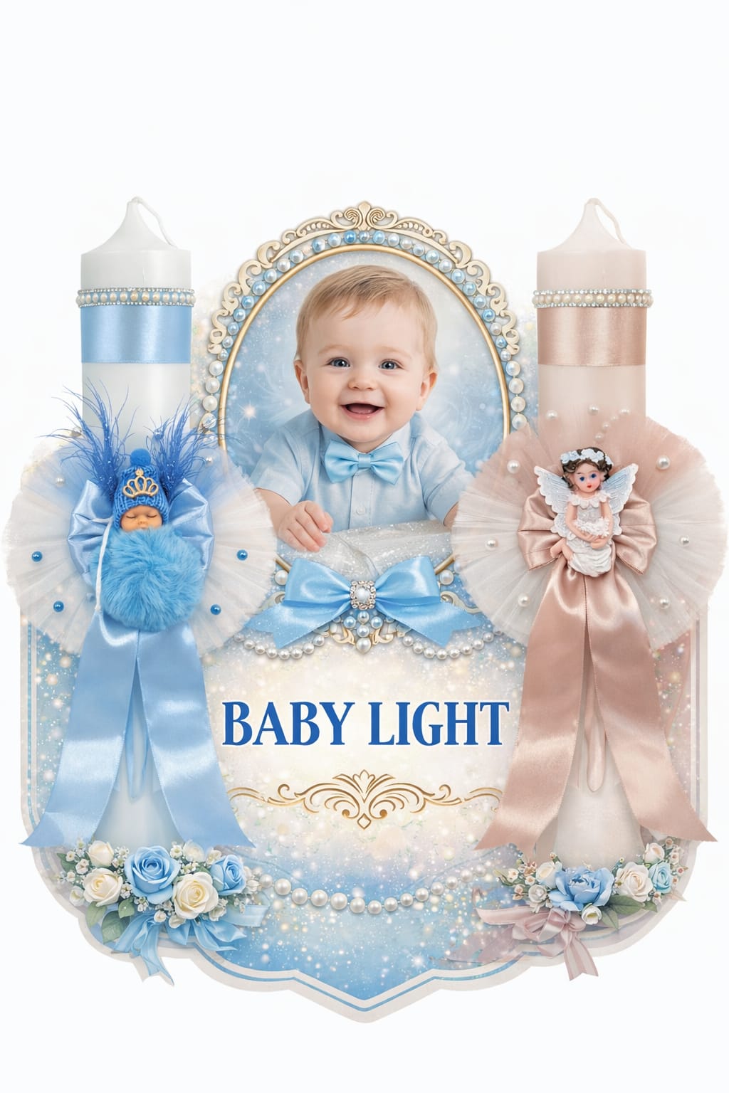 BabyLIGHT este un brand dedicat crearii lumanarilor de botez elegante , menite sa transforme fiecare ceremonie intr-un moment memorabil. Fiecare lumanare si accesoriu este realizat manual cu grija si atentie la detalii , imbinand designul rafinat cu materiale de calitate , pentru a reflecta puritatea si emotia acestui inceput special.